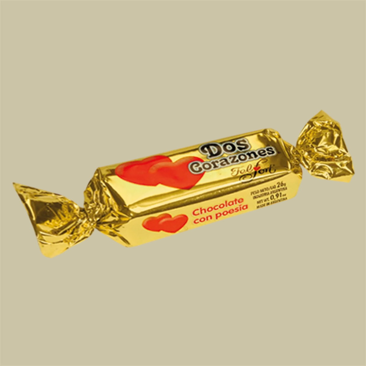 Chocolate clásico dos corazones con poesía, por unidad. Un clásico que no falla.